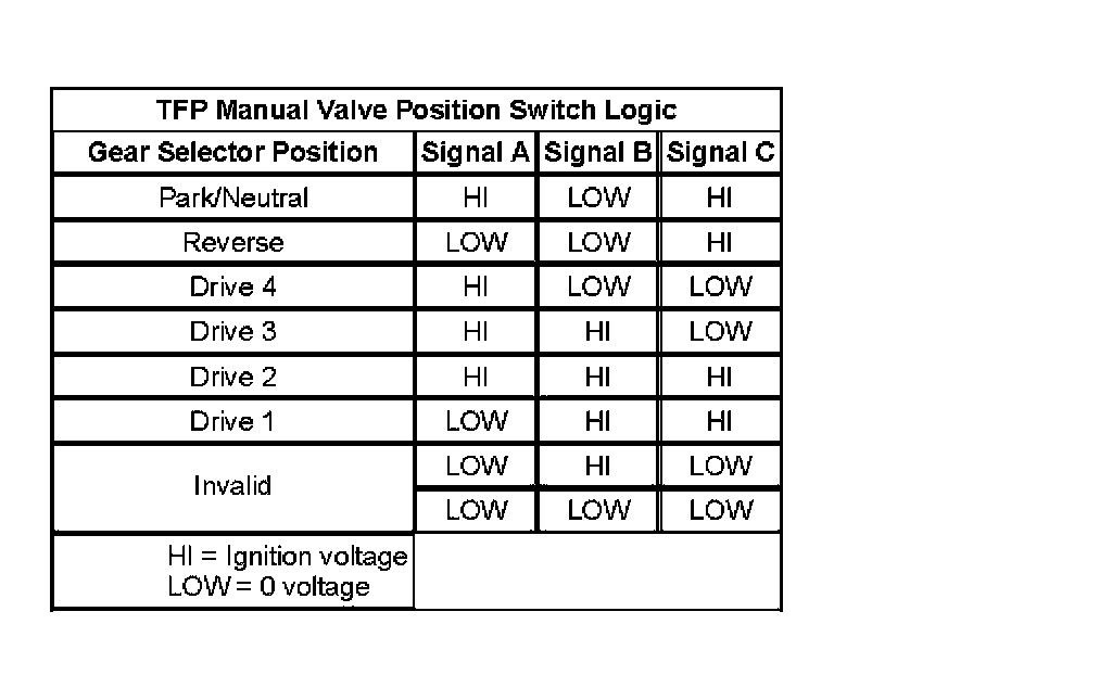 Transmission Fluid Pressure Manual Valve Position Switch Logic: