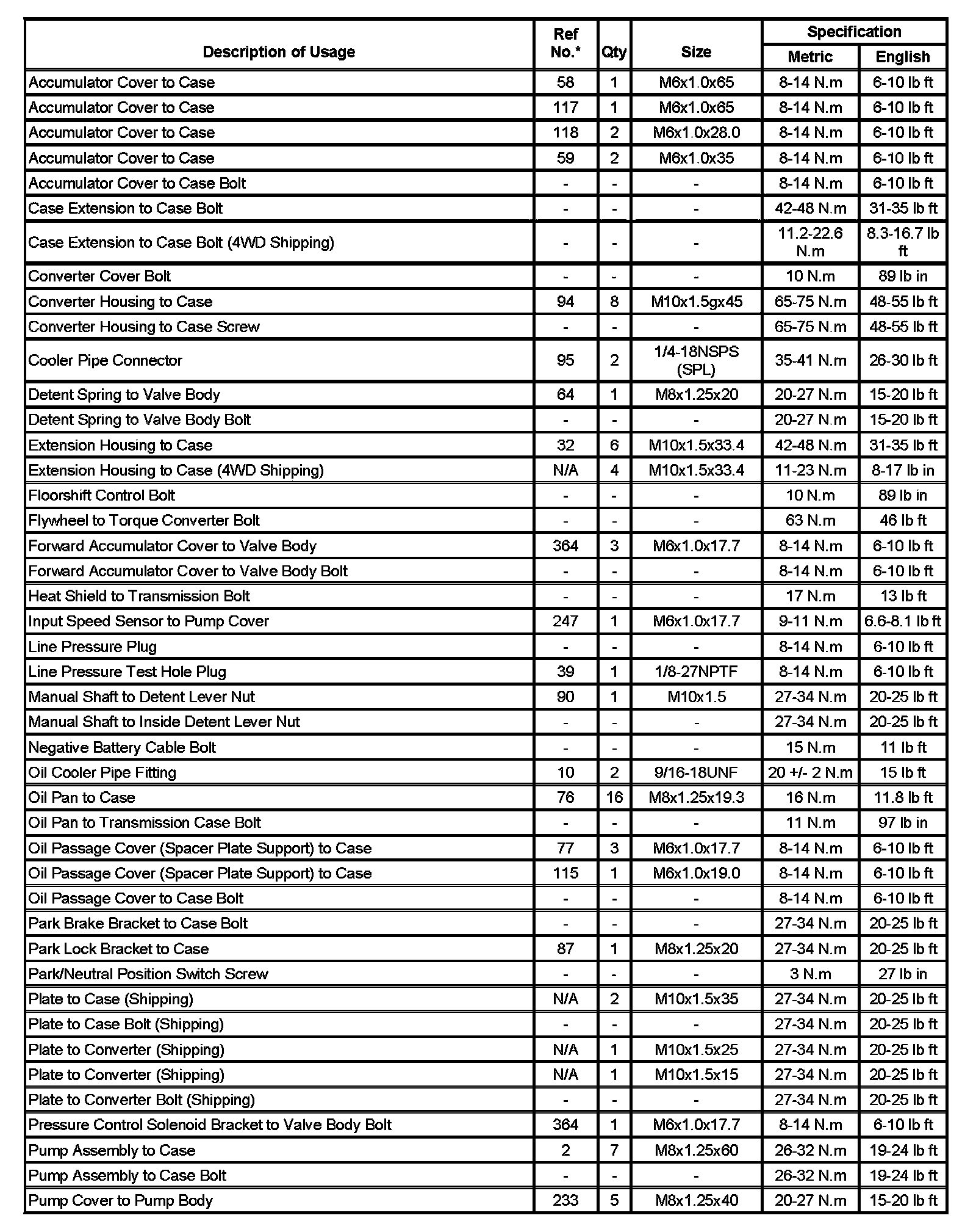 Fastener Tightening Specifications (Part 1):