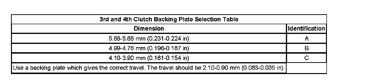Third and Fourth Clutch Backing Plate Selection: