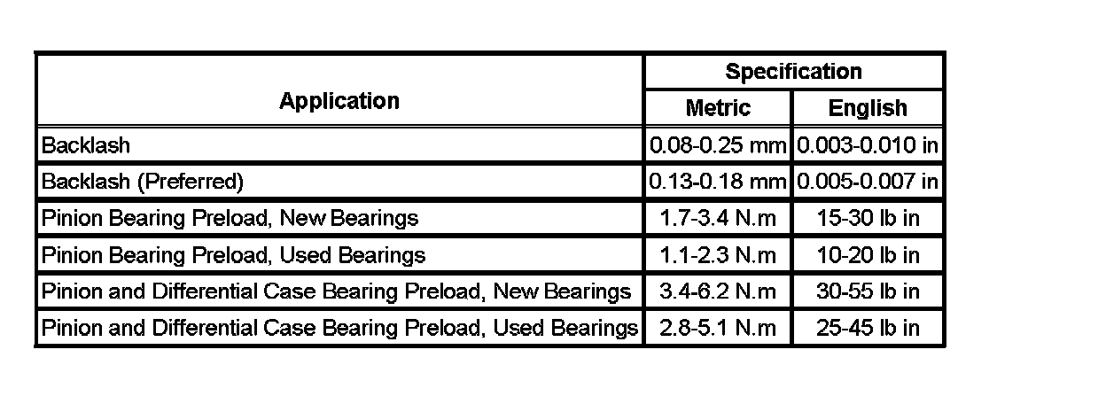 Axle Preload and Backlash Specifications: