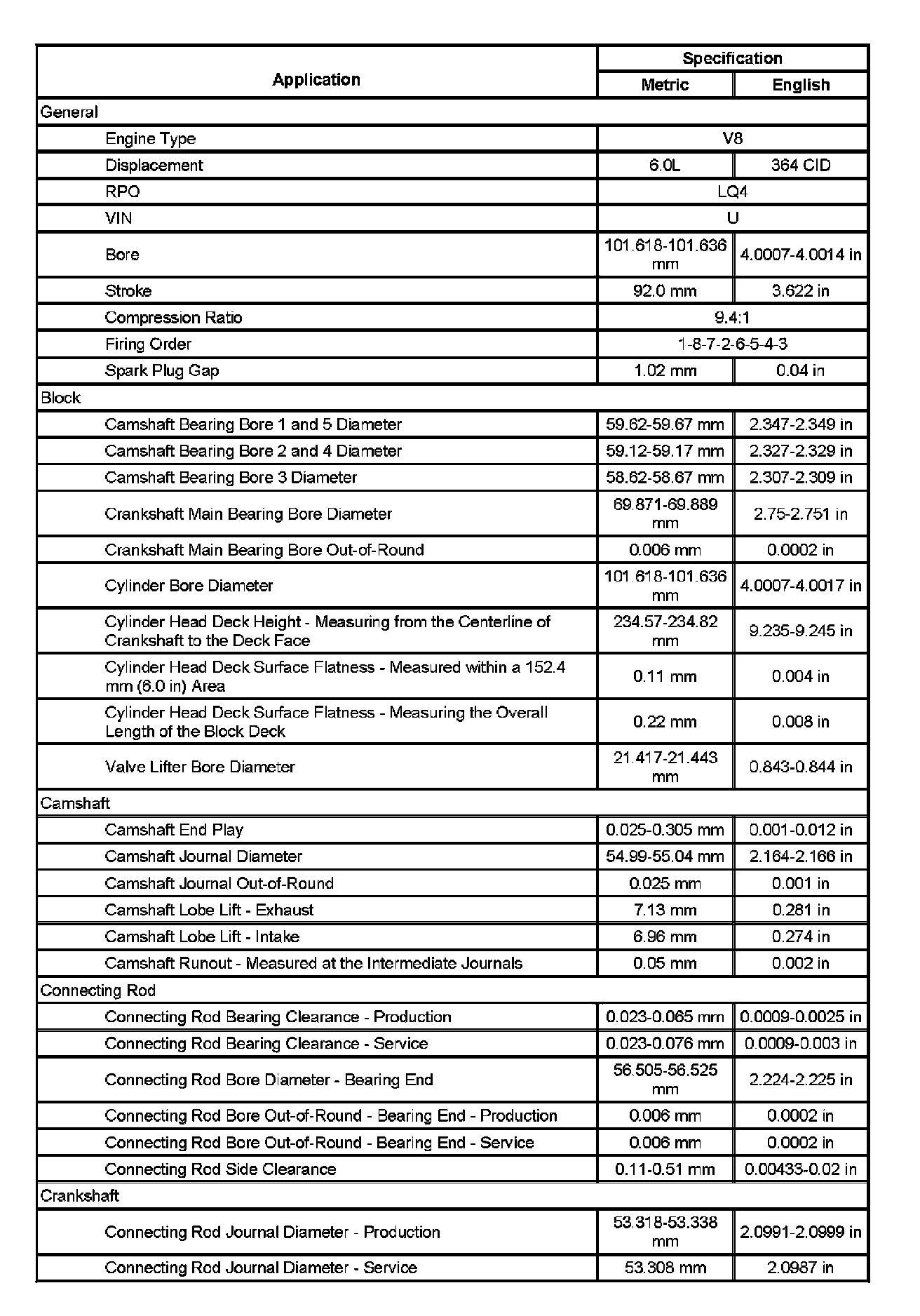 Engine Mechanical Specifications (Part 4):
