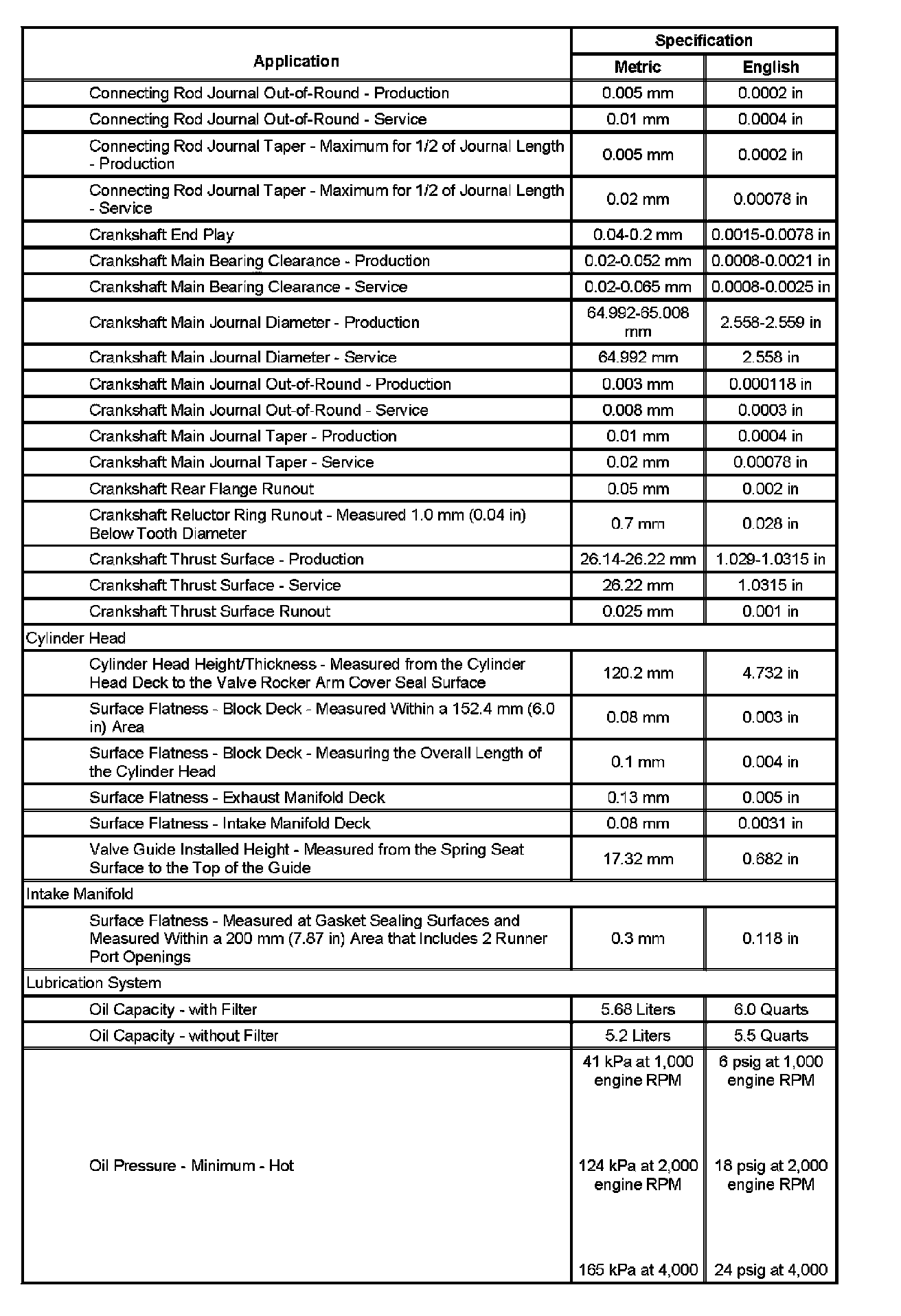 Engine Mechanical Specifications (Part 2):