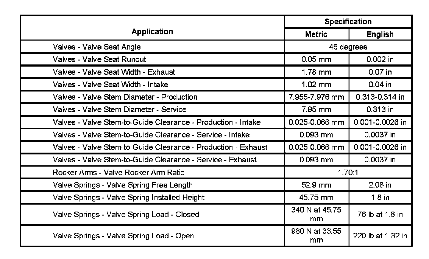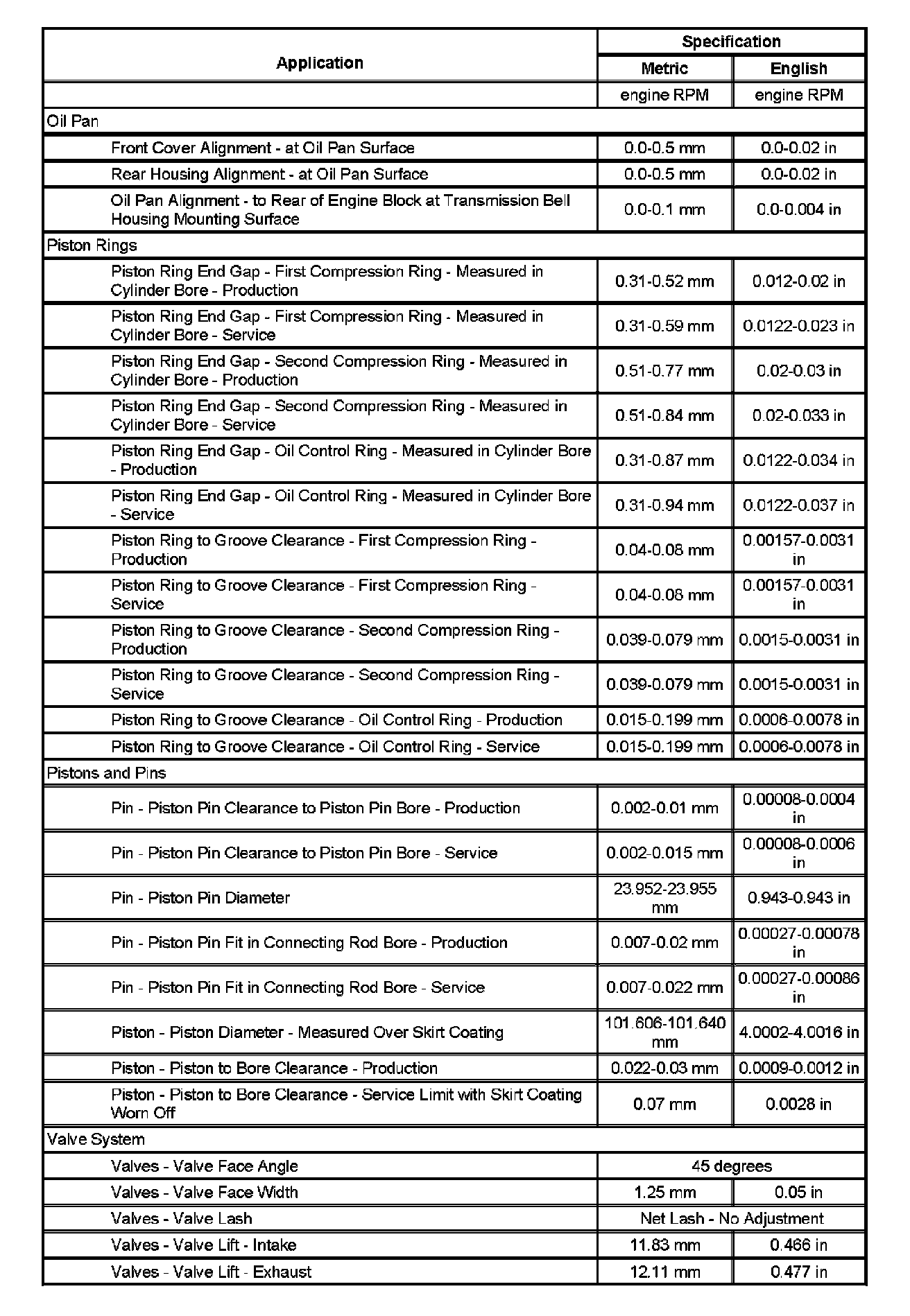 Engine Mechanical Specifications