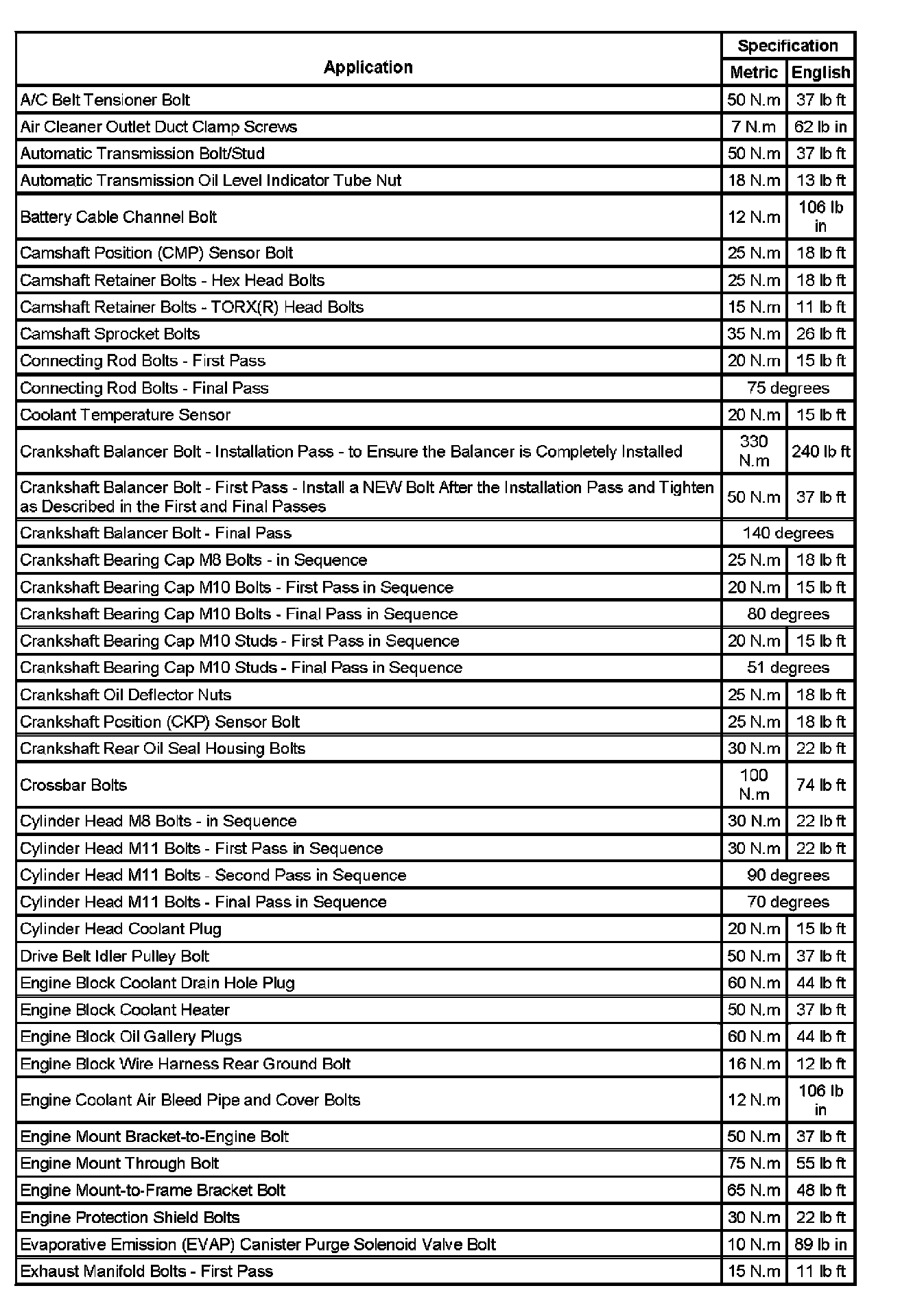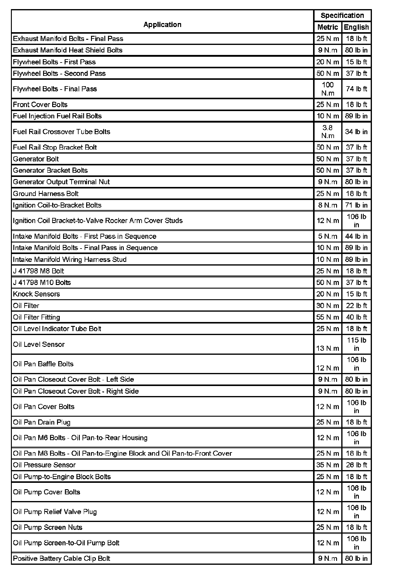 Fastener Tightening Specifications (Part 1):