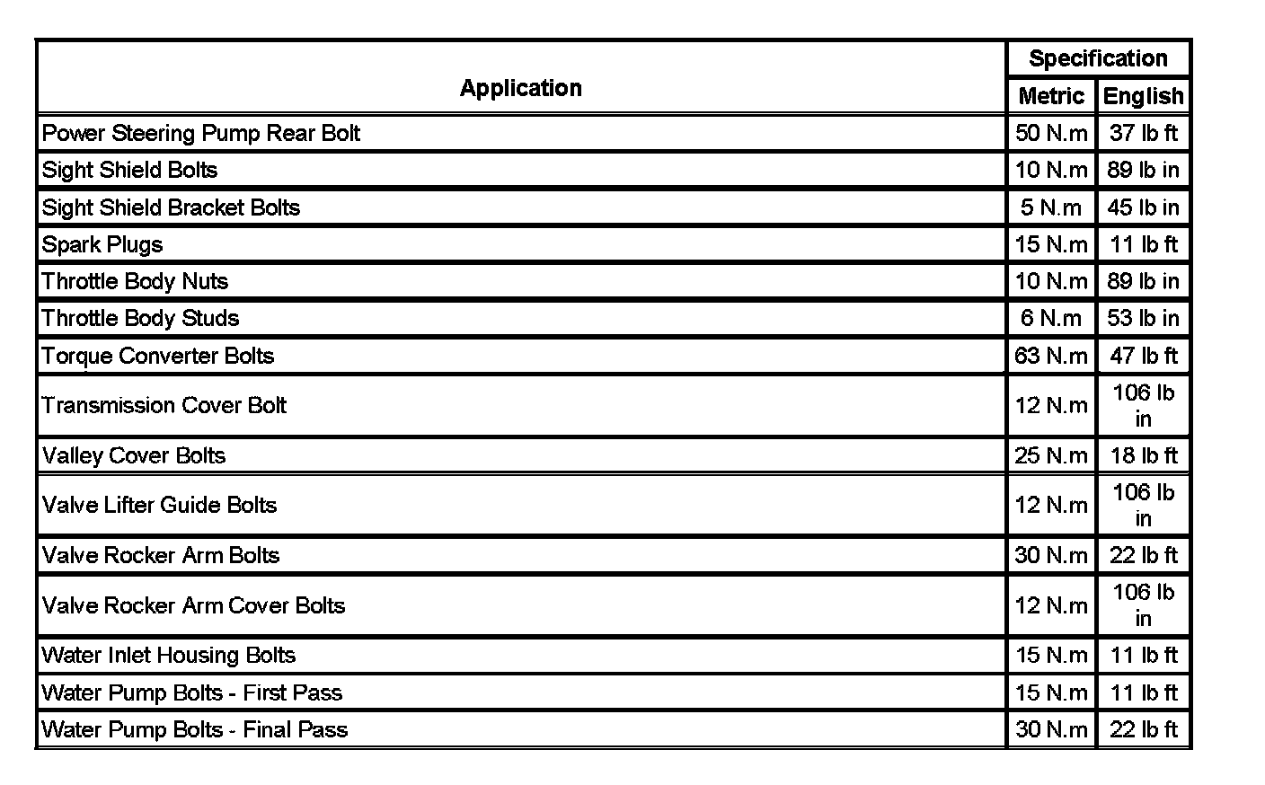 Fastener Tightening Specifications