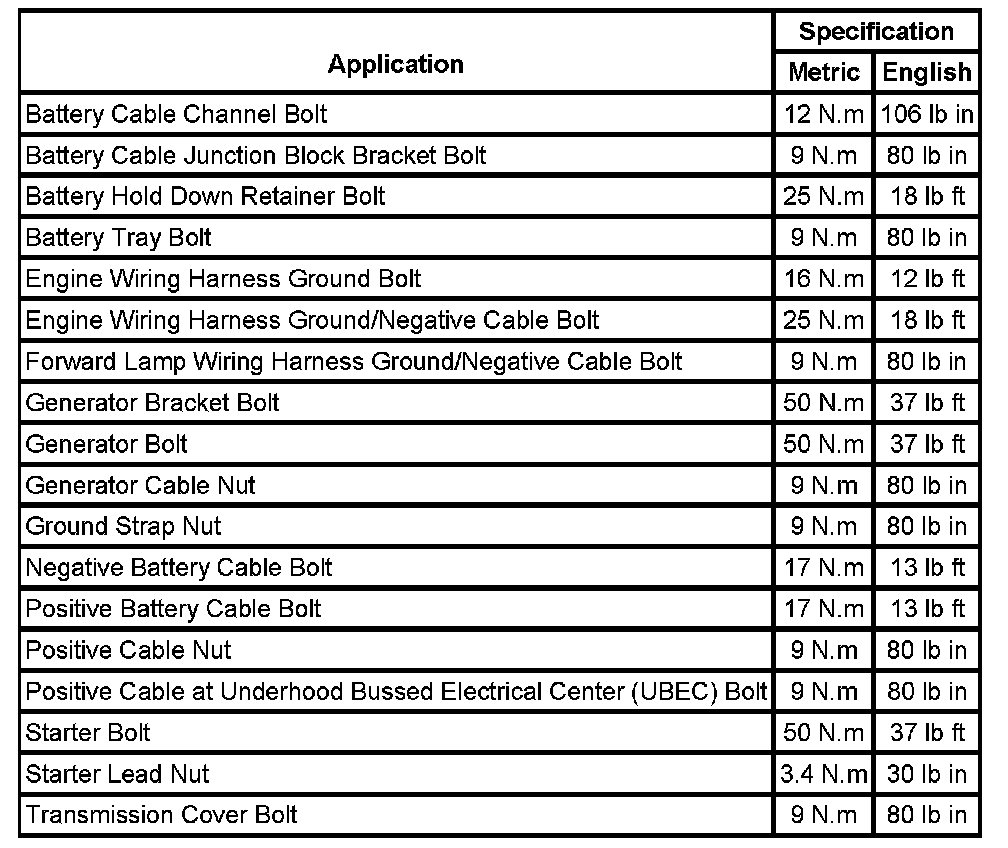 Starting and Charging: Specifications