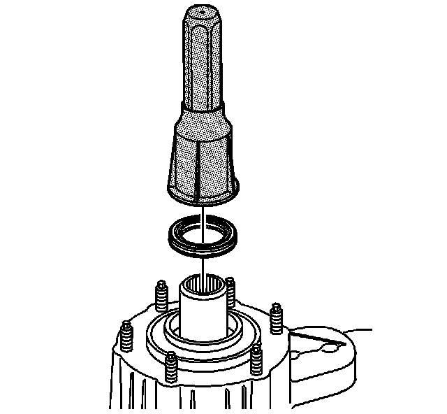 4. Install the seal for the shift detent lever shaft. The seal will install using hand pressure. The spring side, or opened side, of the seal faces outward.
