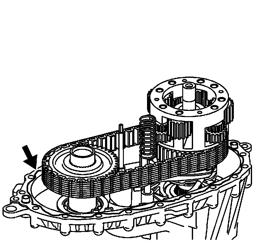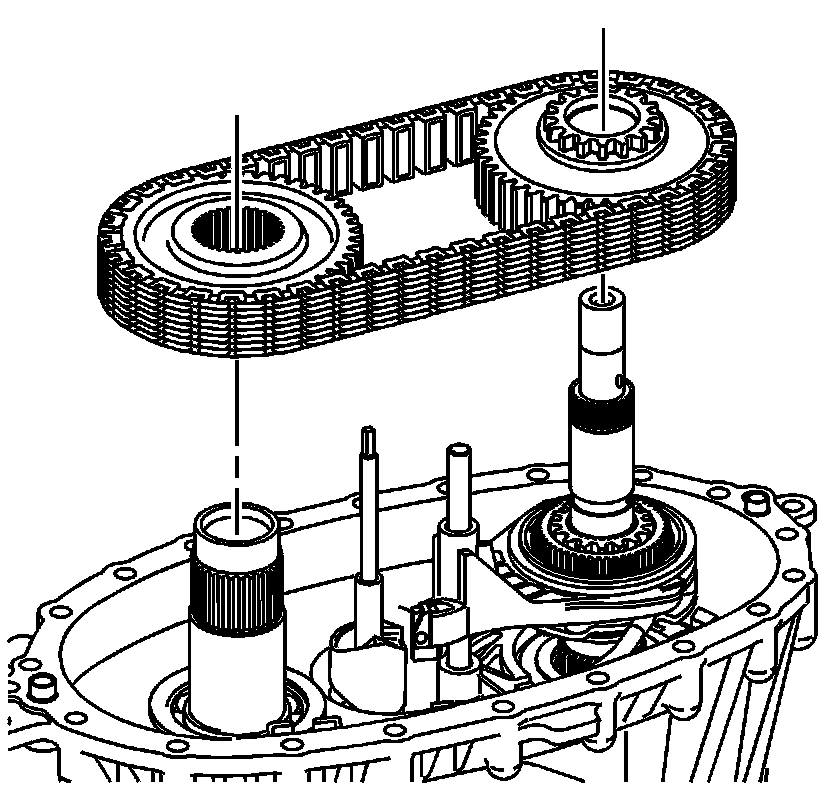 * Align the drive sprocket engagement teeth with the lockup shift assembly hub teeth.