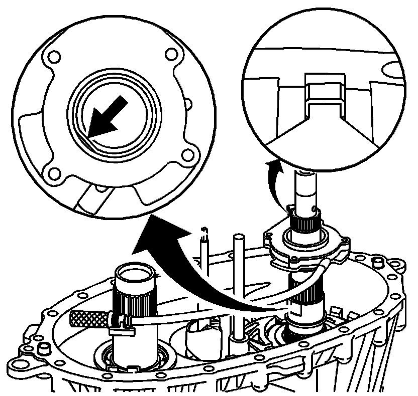 * Turn the mainshaft to align the slot on the inner lockup hub with the large tooth area on the lockup shift assembly hub.