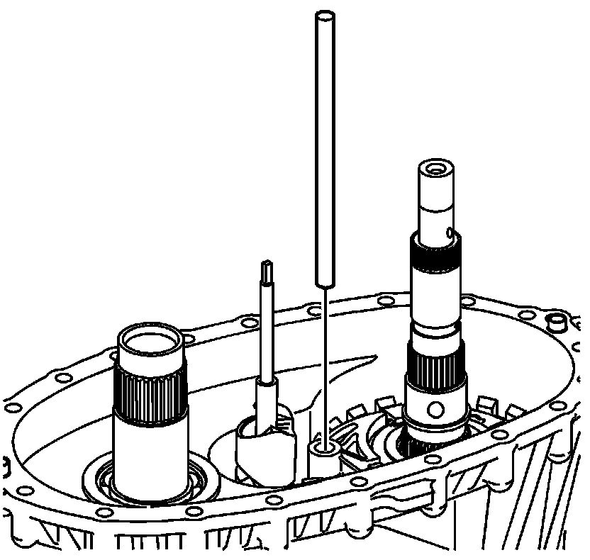 Notice: In order to prevent component damage, properly remove and install the shift detent lever shaft assembly. When removing or installing the shift detent lever shaft assembly, keep the shaft straight and do not tilt. Tilting the shift detent lever shaft assembly in the transfer case housing will break the tip on the end of the shaft.
