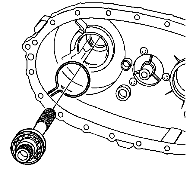* Install the rear output shaft bearing outer retaining ring until it is seated in the bearing groove.
