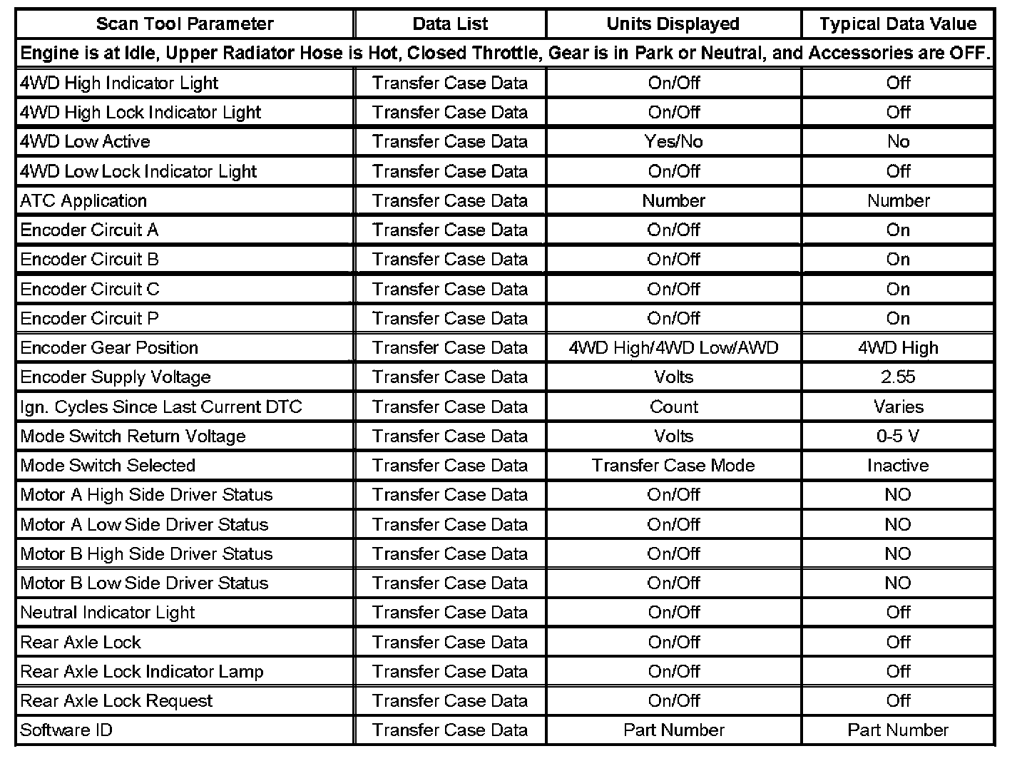 Scan Tool Data List: