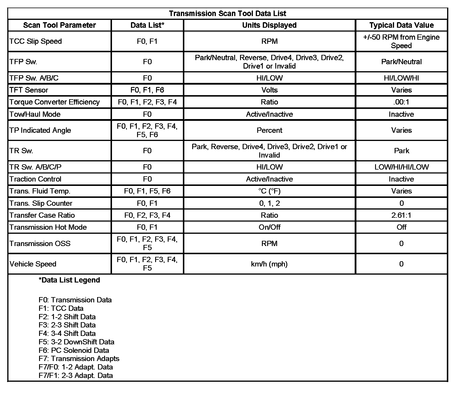 Scan Tool Data List