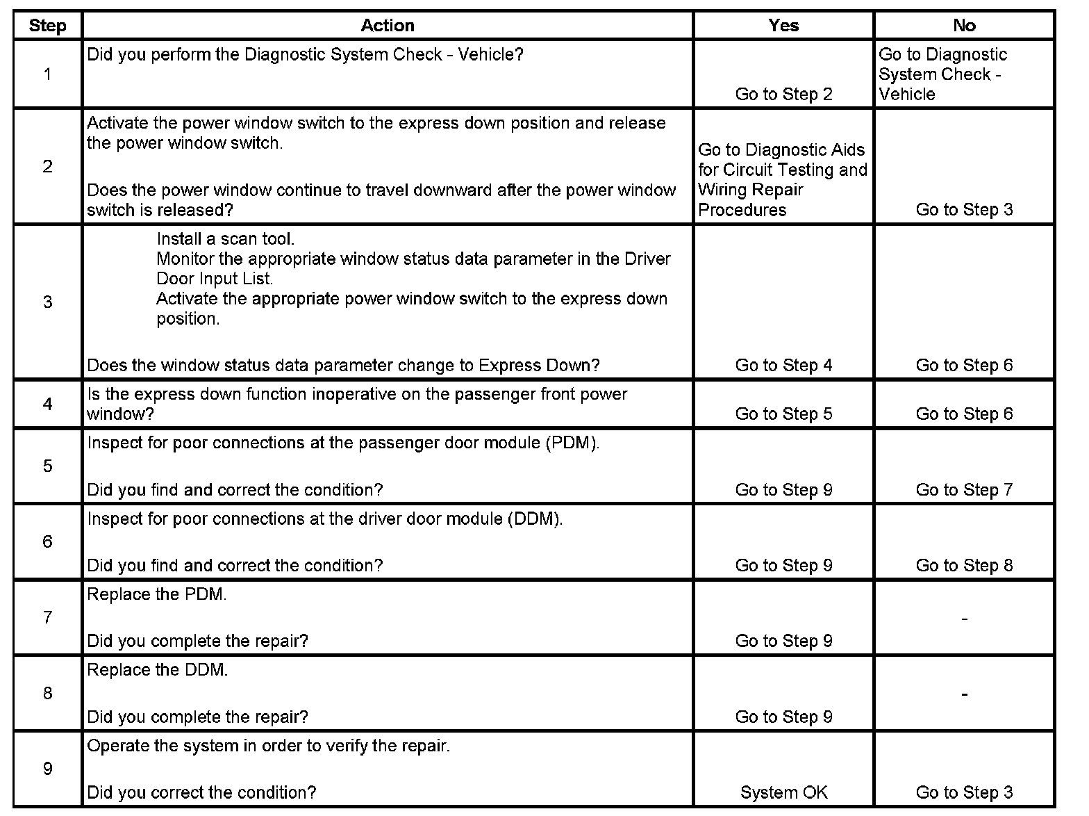 Power Window Express Down Function Inoperative