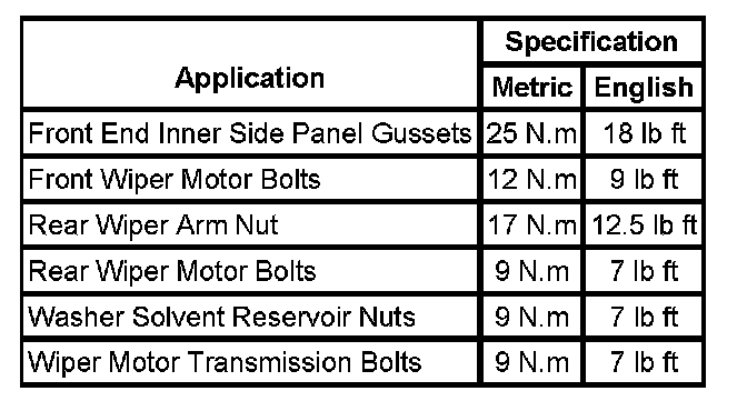 Wiper and Washer Systems: Specifications