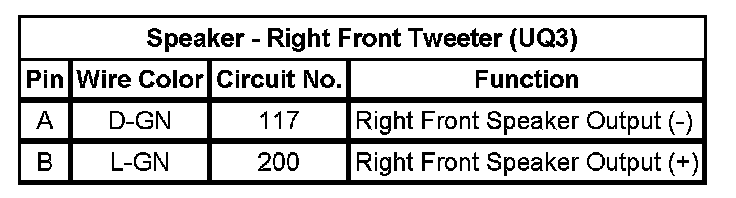 Speaker - Right Front Tweeter (UQ3)