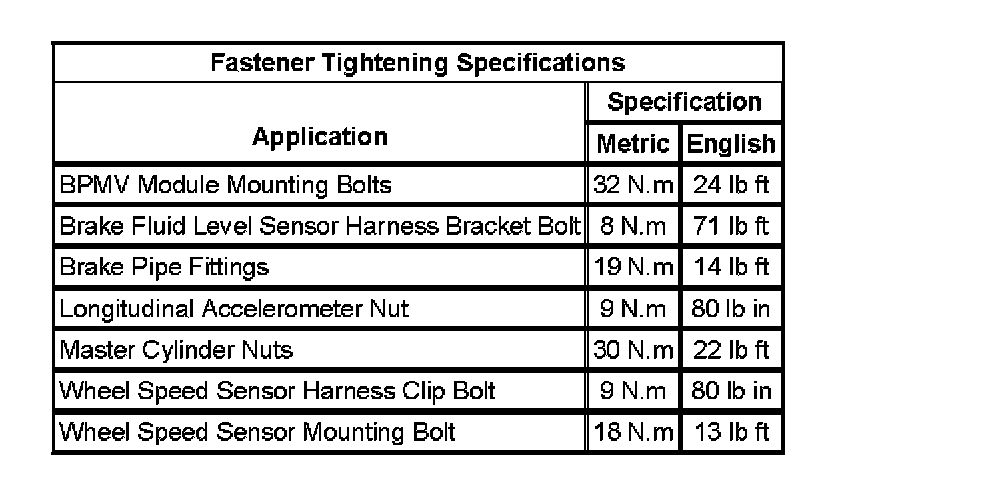 Fastener Tightening Specifications: