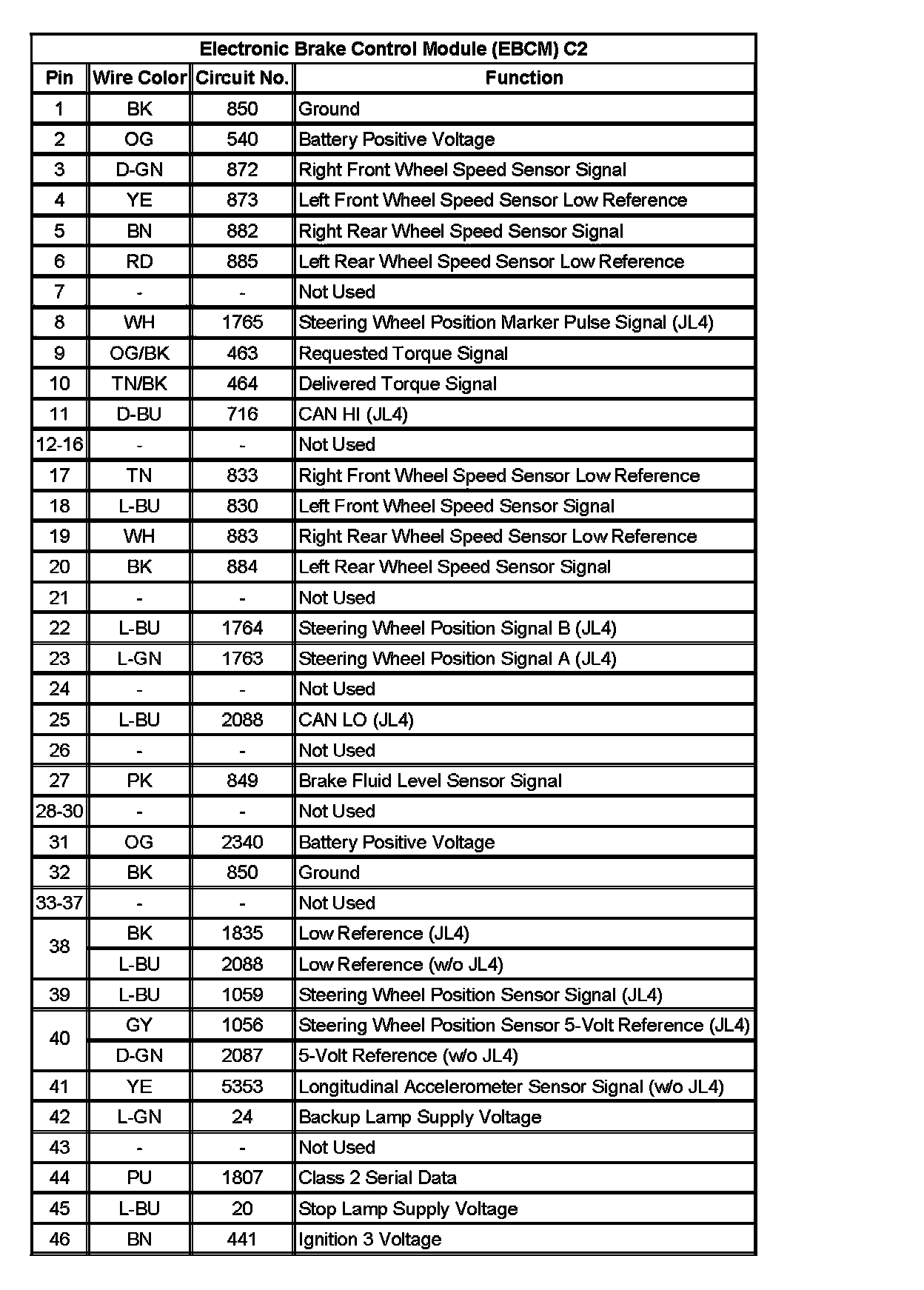 Electronic Brake Control Module (EBCM) C2: