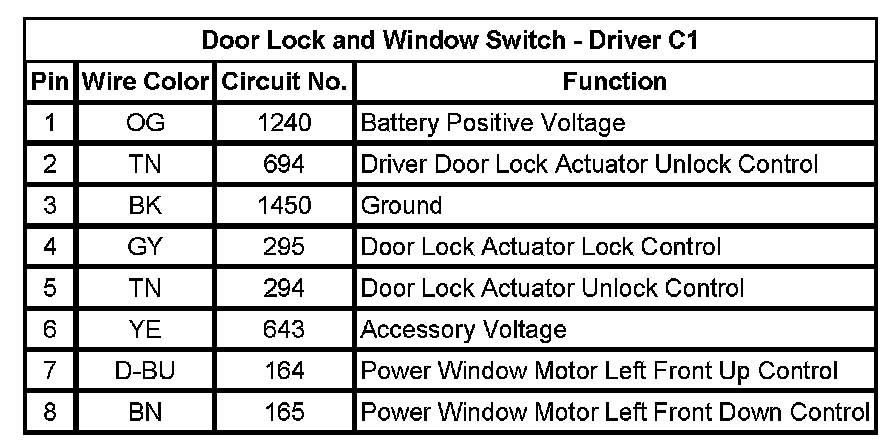 Door Lock and Window Switch - Driver C1