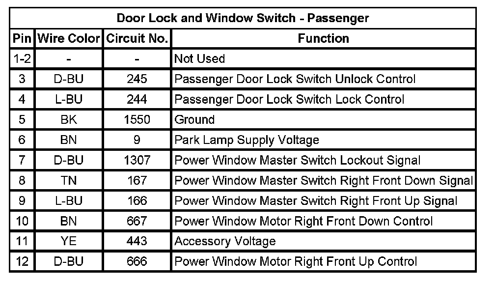 Door Lock and Window Switch - Passenger