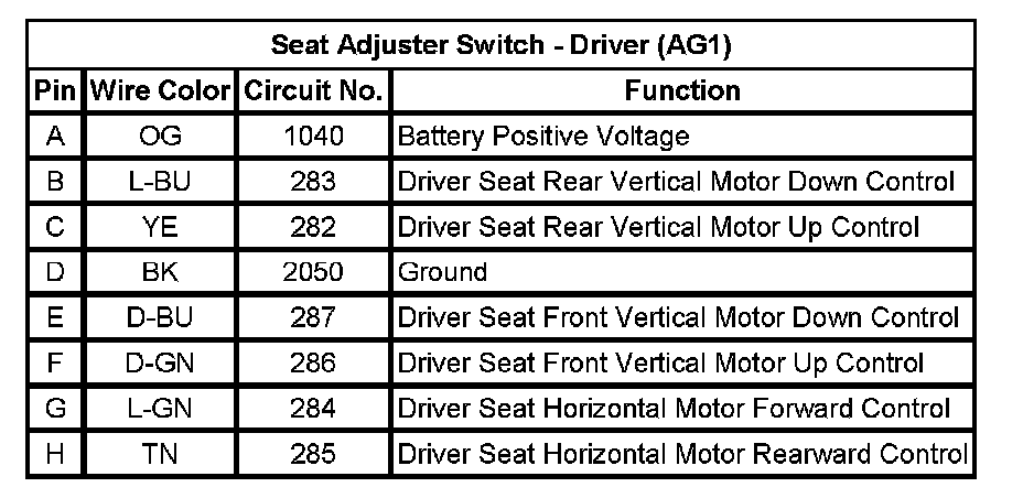 Seat Adjuster Switch - Driver (AG1)