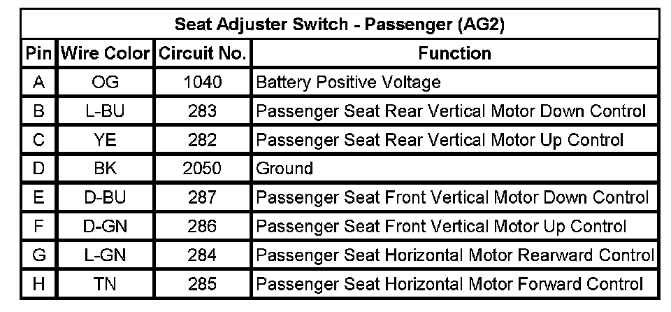 Seat Adjuster Switch - Passenger (AG2)