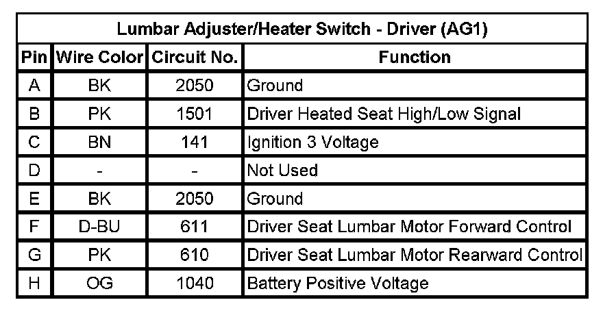 Lumbar Adjuster/Heater Switch - Driver (AG1)