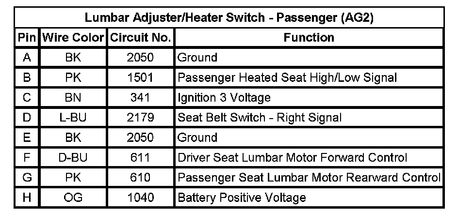 Lumbar Adjuster/Heater Switch - Passenger (AG2)