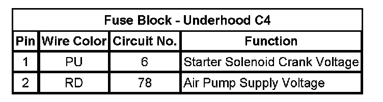 Fuse Block - Underhood C2 (Pin 1 To 16):