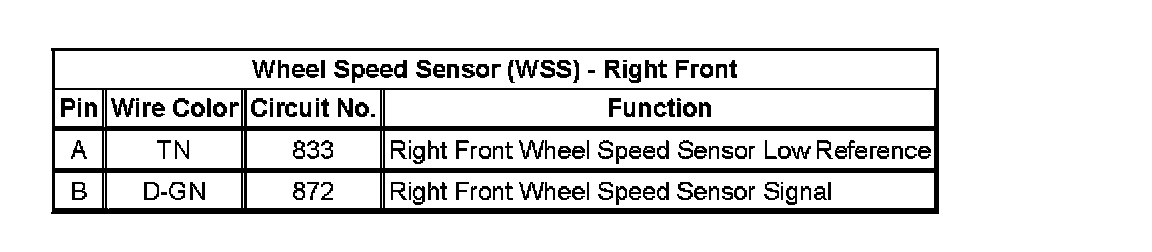 Wheel Speed Sensor (WSS) - Right Front: