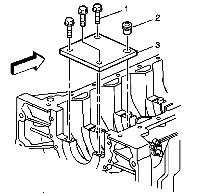 2. Loosely install the fixture plate bolts (1) into the remaining crankshaft main cap bolt holes.