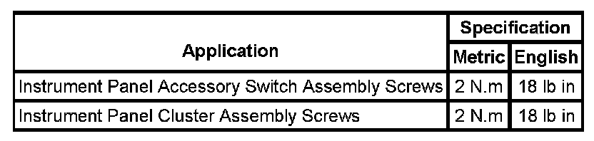 Instrument Panel, Gauges and Warning Indicators: Specifications