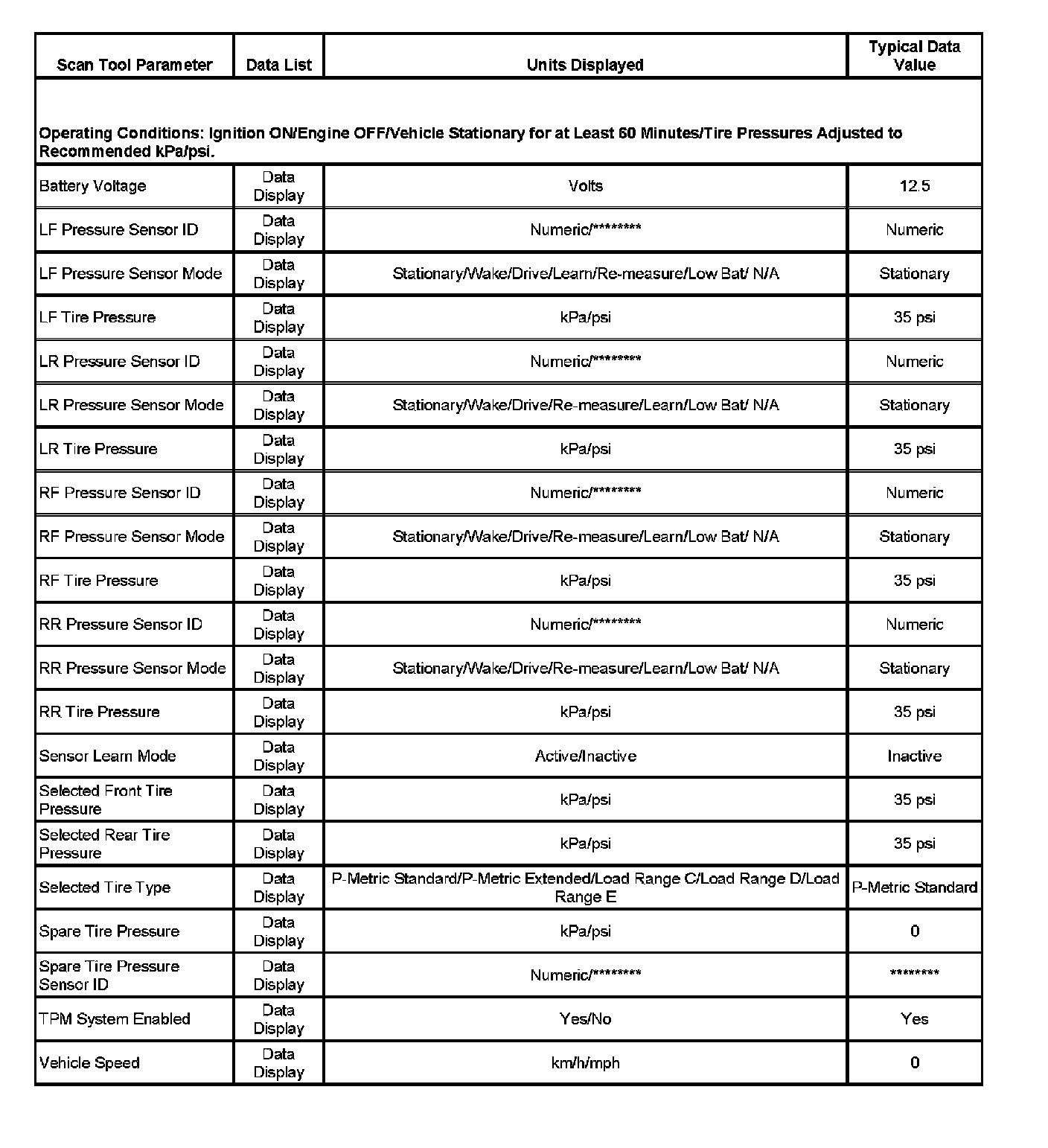 Scan Tool Data List: