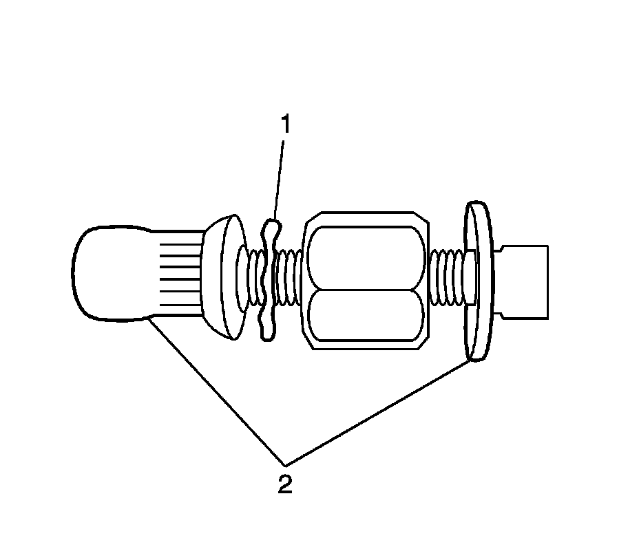 12. Apply GM Super Lube with PTFE, GM P/N 12371287, to the lower half of the rivnut and between the washer and hex body of rivnut tool prior to inserting the rivnut into the hole.