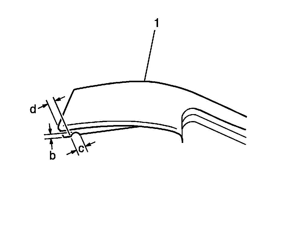 22. Using diagonal cutters, clip a notch (c) in both A-pillars (1) as shown for the wire pass through.