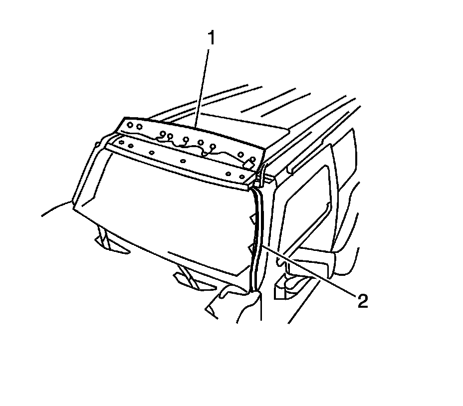 21. Disengage the A-pillar trim from the front end of the luggage rack/siderail (2) and remove.