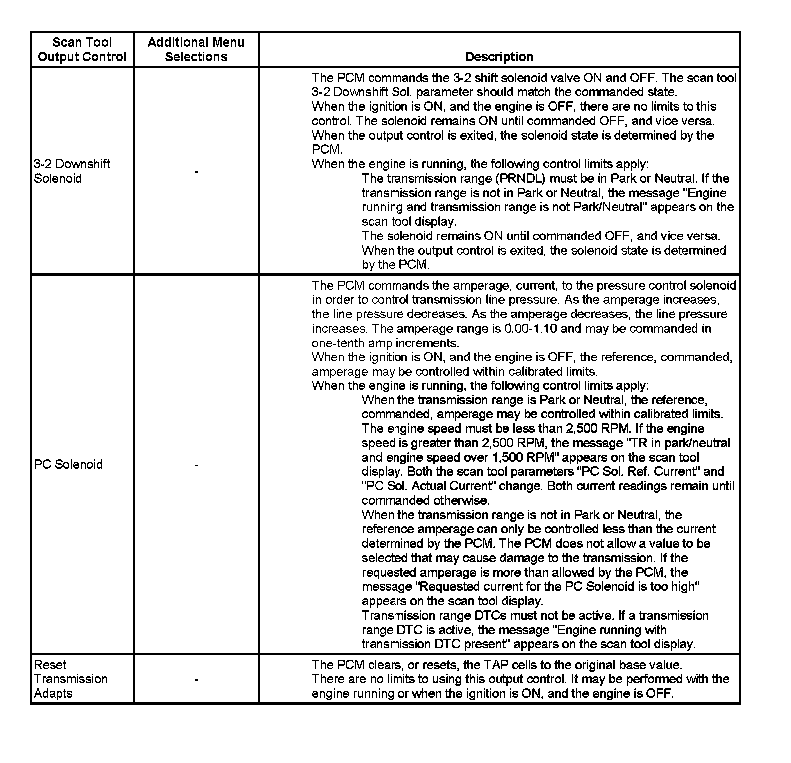 Scan Tool Output Controls