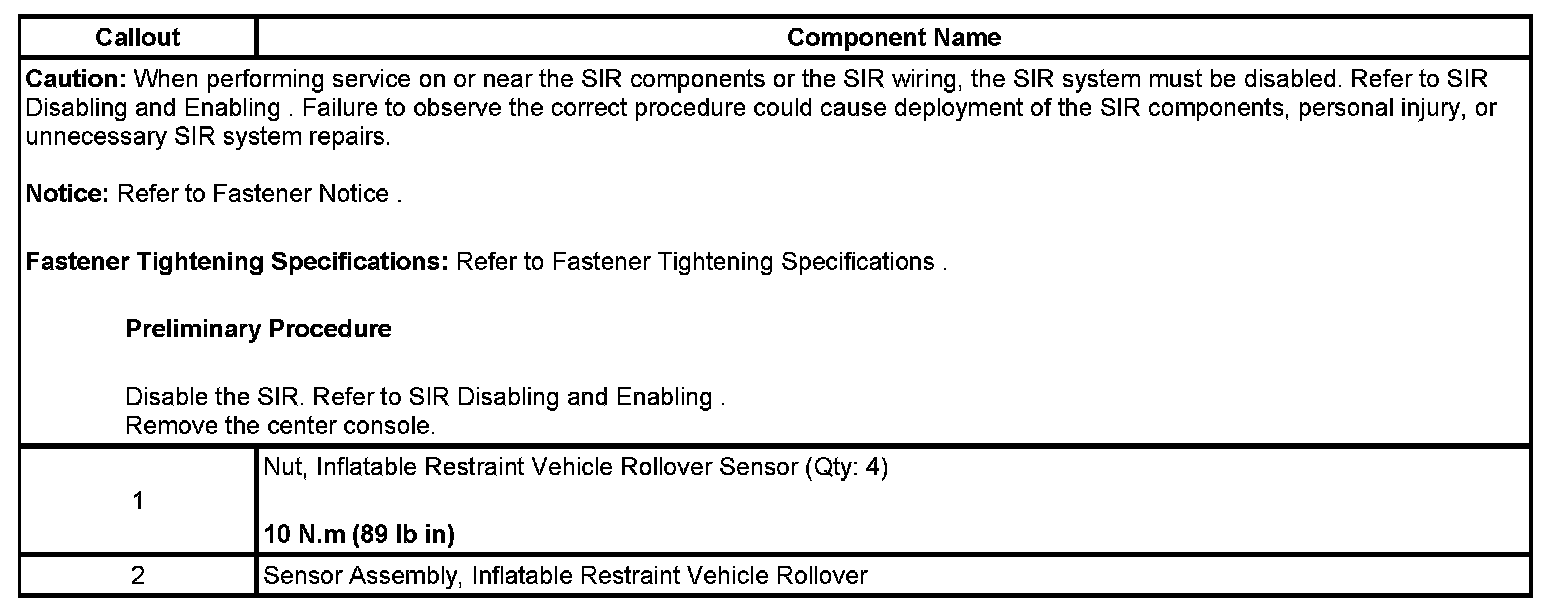 Inflatable Restraint Vehicle Rollover Sensor Replacement