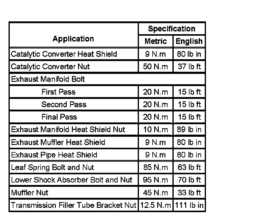 Fastener Tightening Specifications: