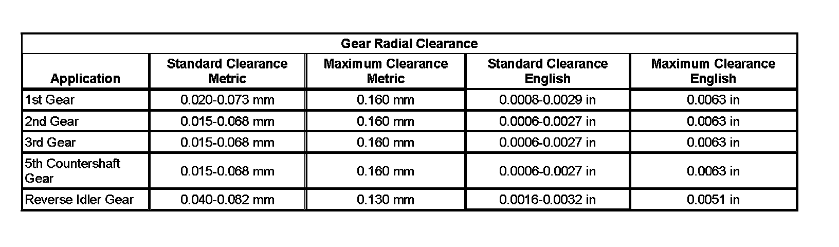 Transmission Clearance Specifications (part 5):