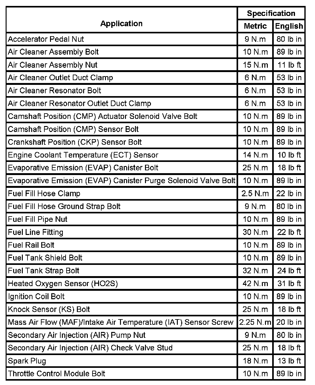 Fastener Tightening Specifications