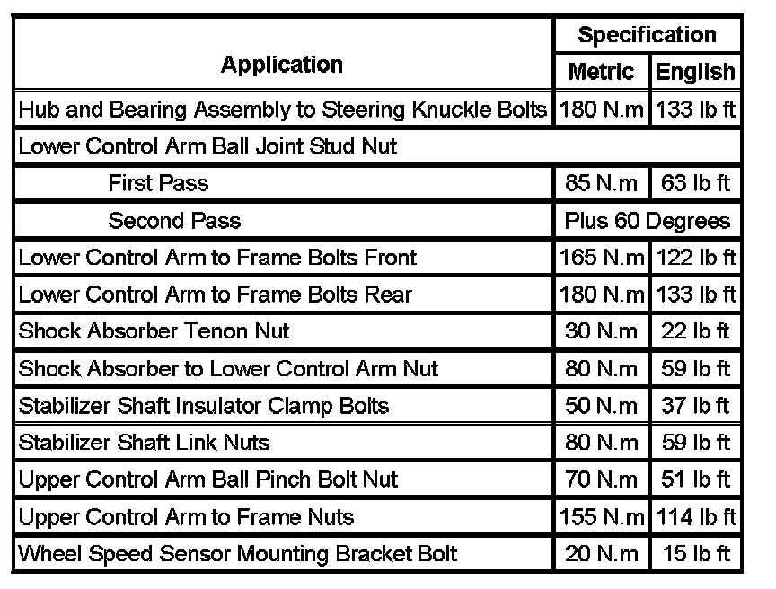 Fastener Tightening Specifications: