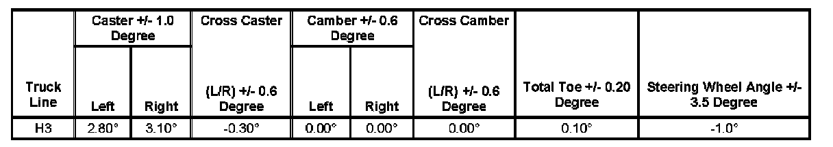 Wheel Alignment Specifications