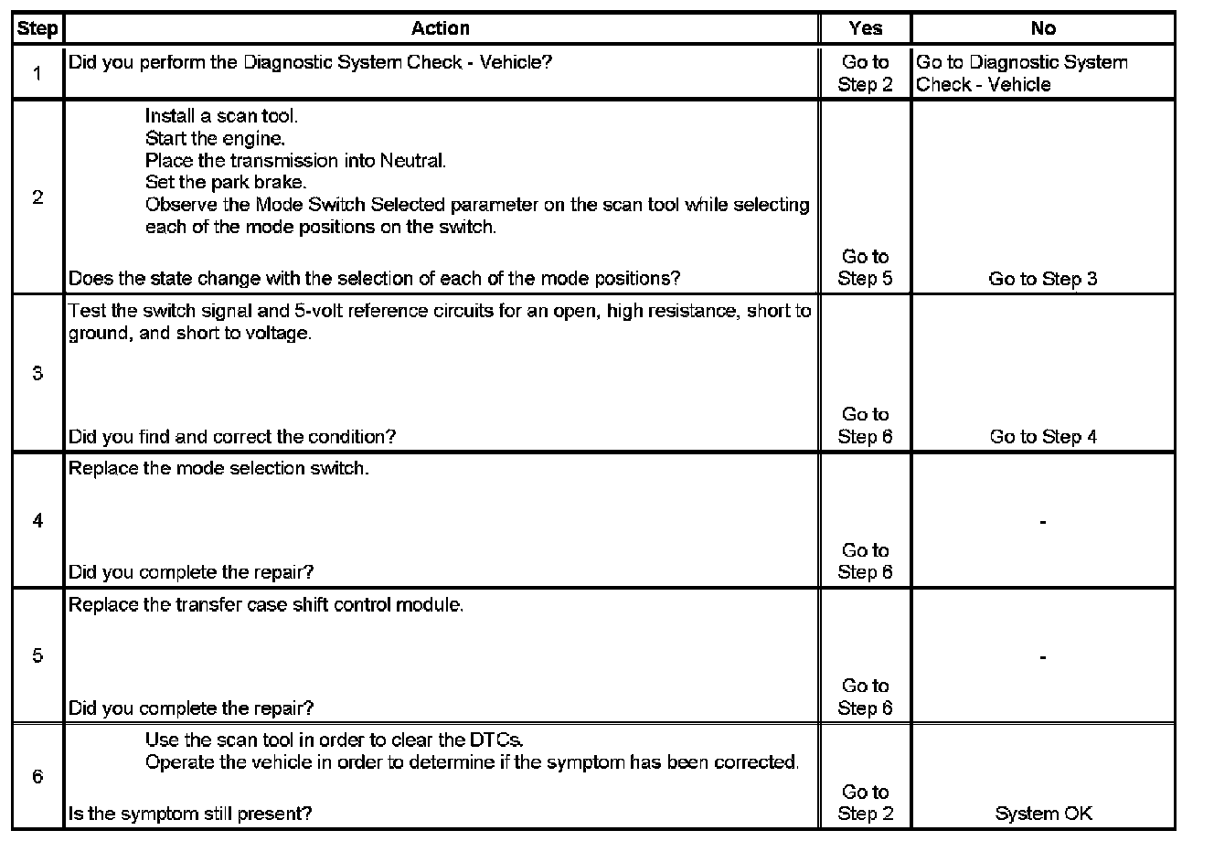 The transfer case shift control module constantly monitors this signal voltage to determine the condition of the mode switch circuit.