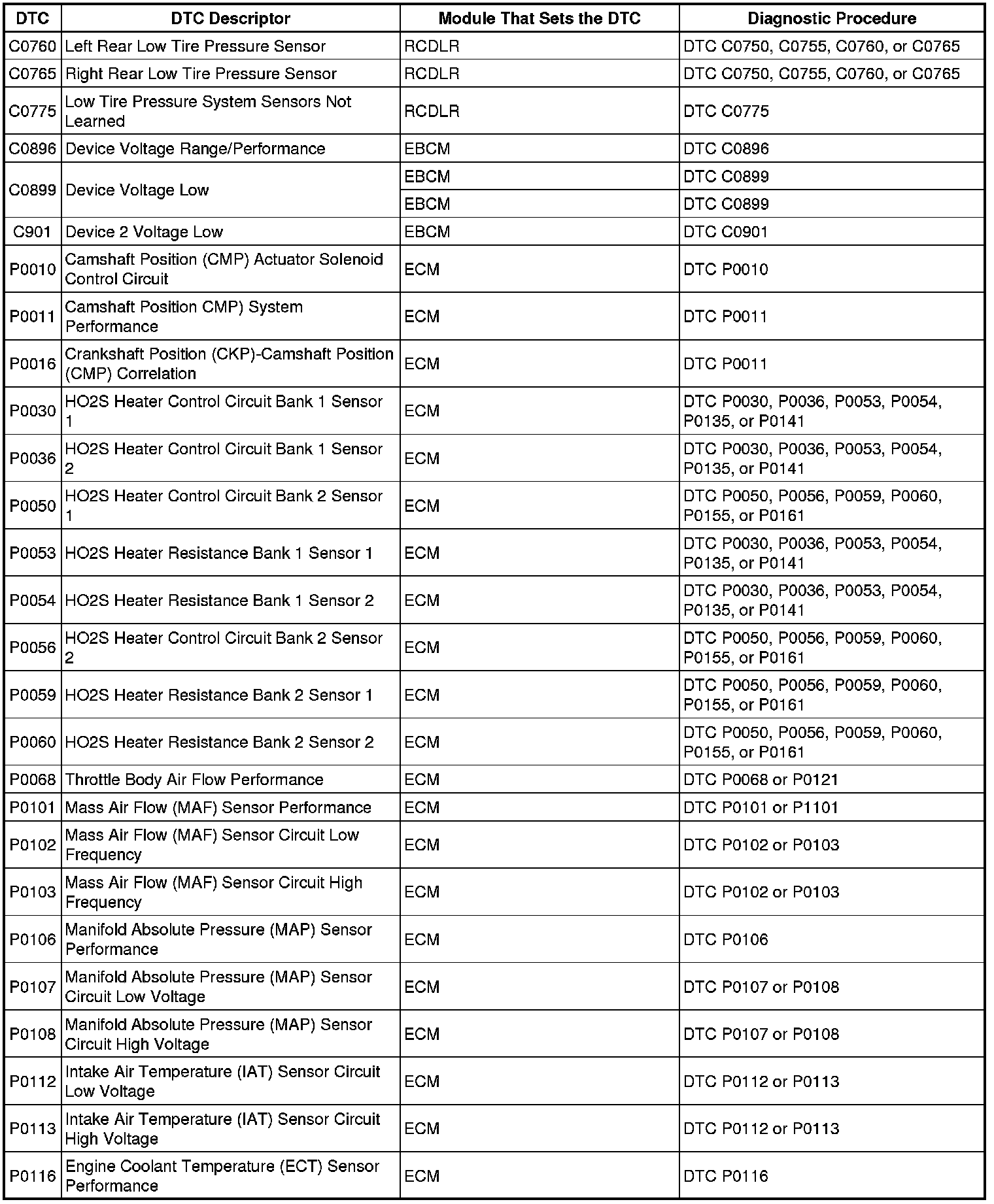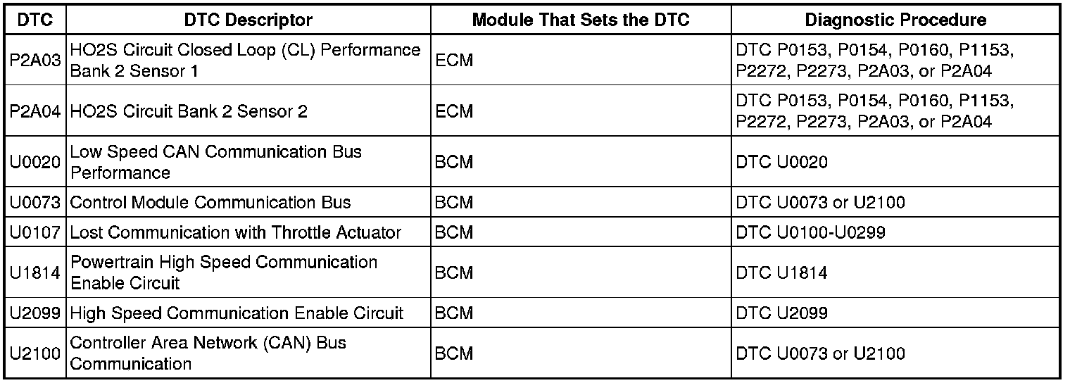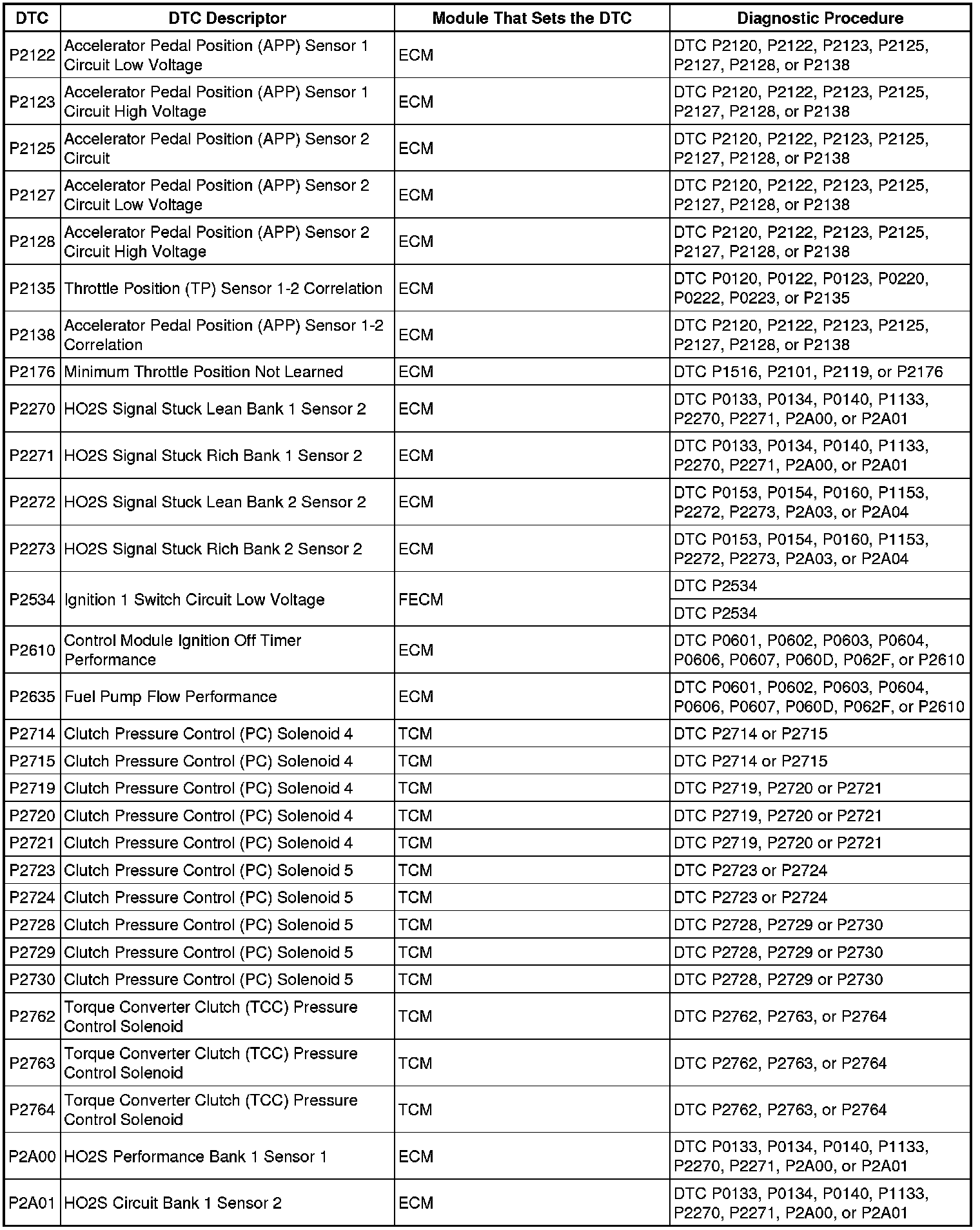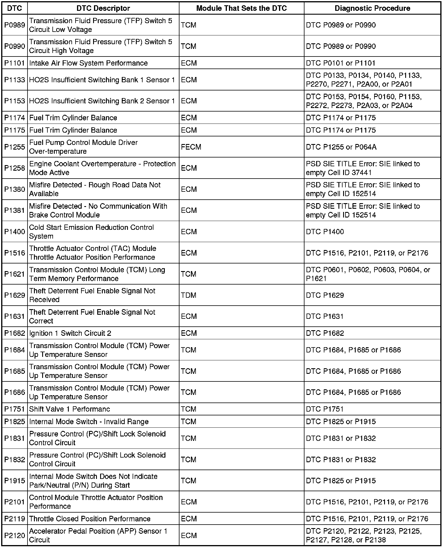 This master DTC list includes all applicable DTCs in alphanumeric order with descriptors.