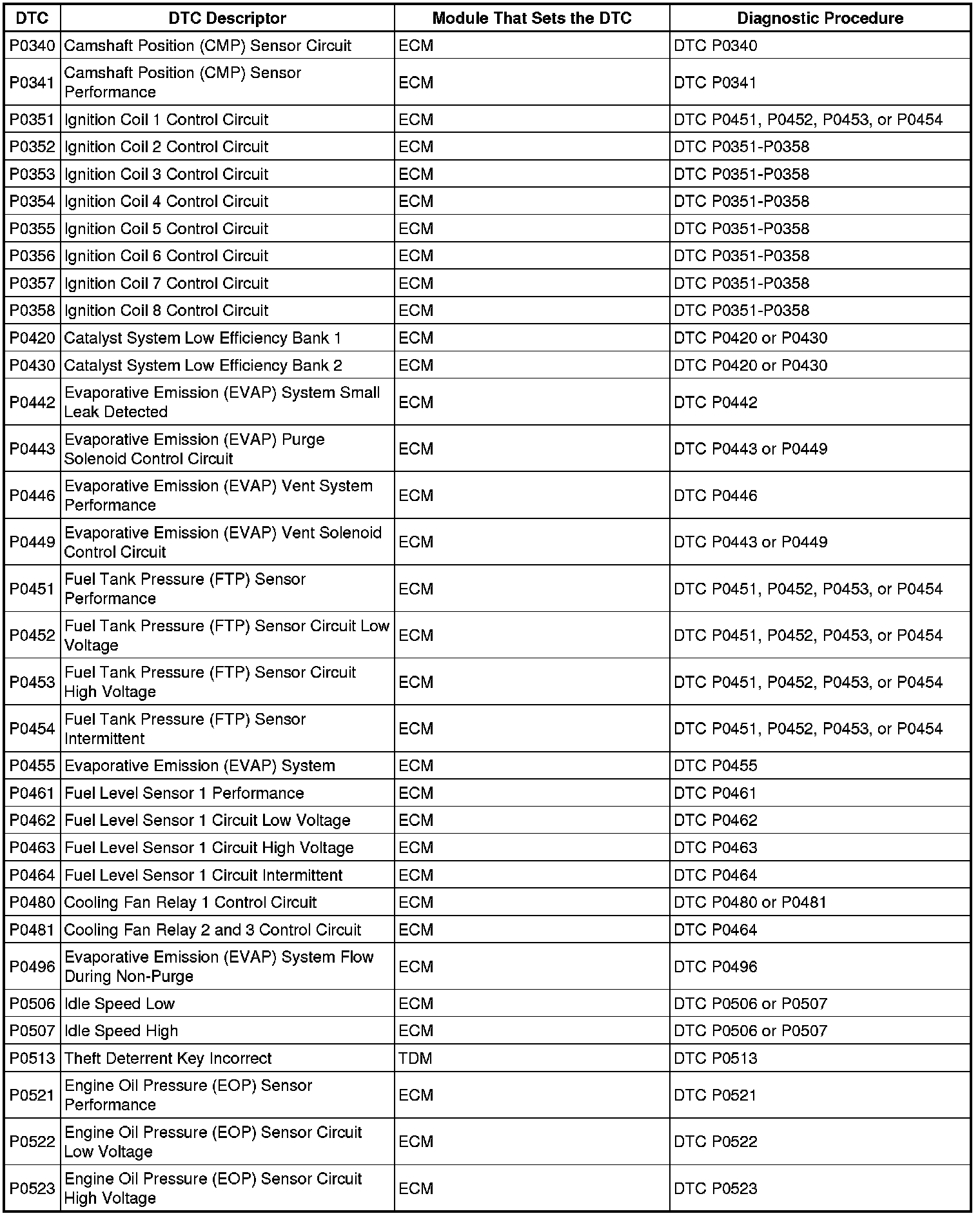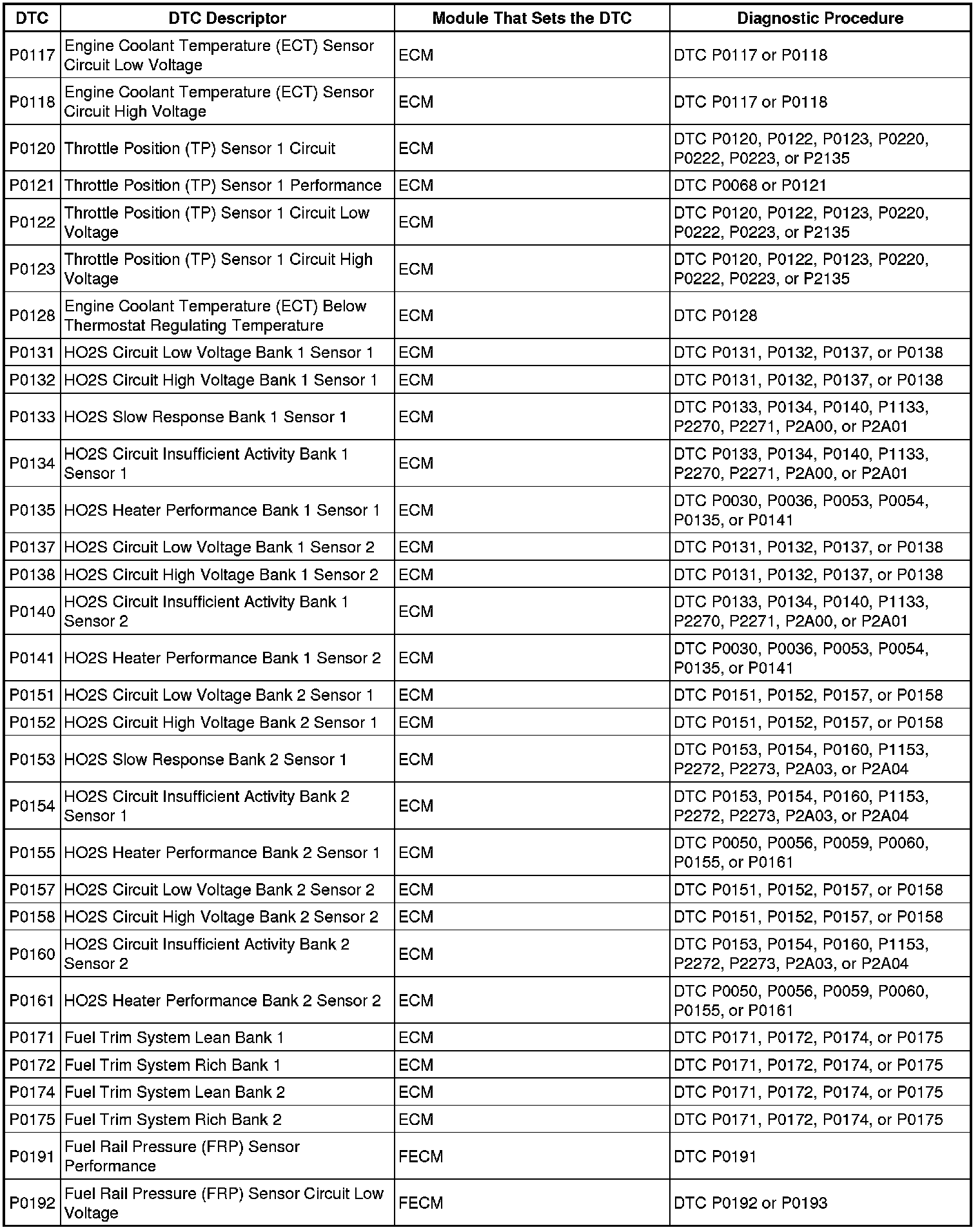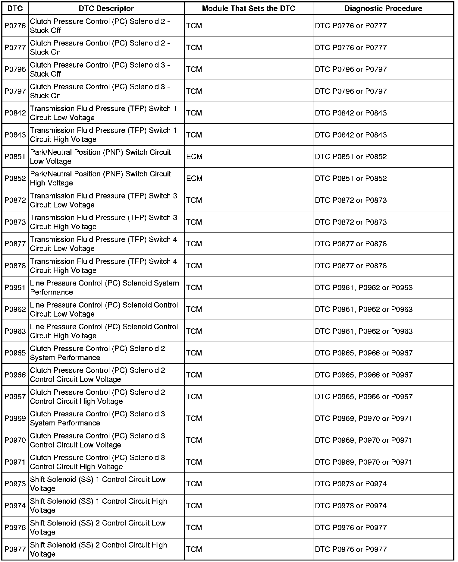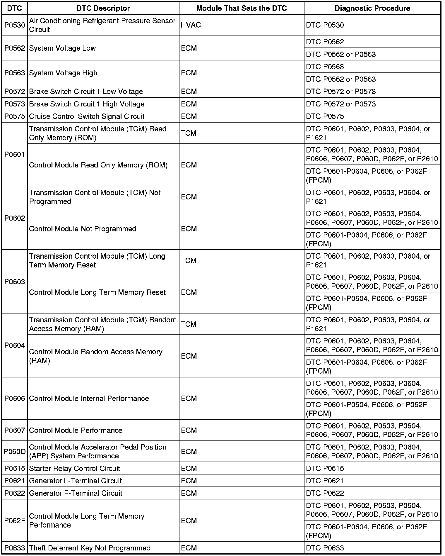 This master DTC list includes all applicable DTCs in alphanumeric order with descriptors.