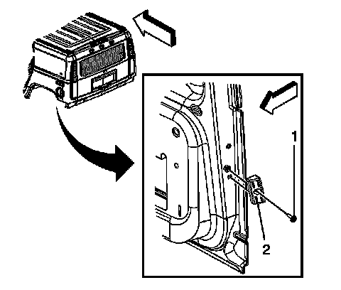 2. Remove the fastener (1) retaining the wedge to the liftgate.