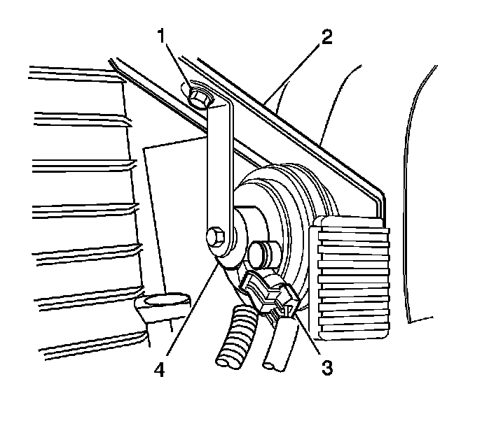 3. Remove the bolt (1) from the horn bracket.