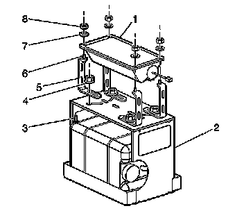* To mount, use 4 M 6 bolts (6), nuts (8), and washers (7) to properly secure the I/P module (1) to the deployment fixture (2).