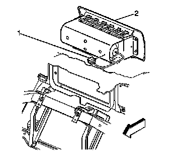 19. Disconnect the inflatable restraint I/P module connector (1) located behind the I/P module (2).
